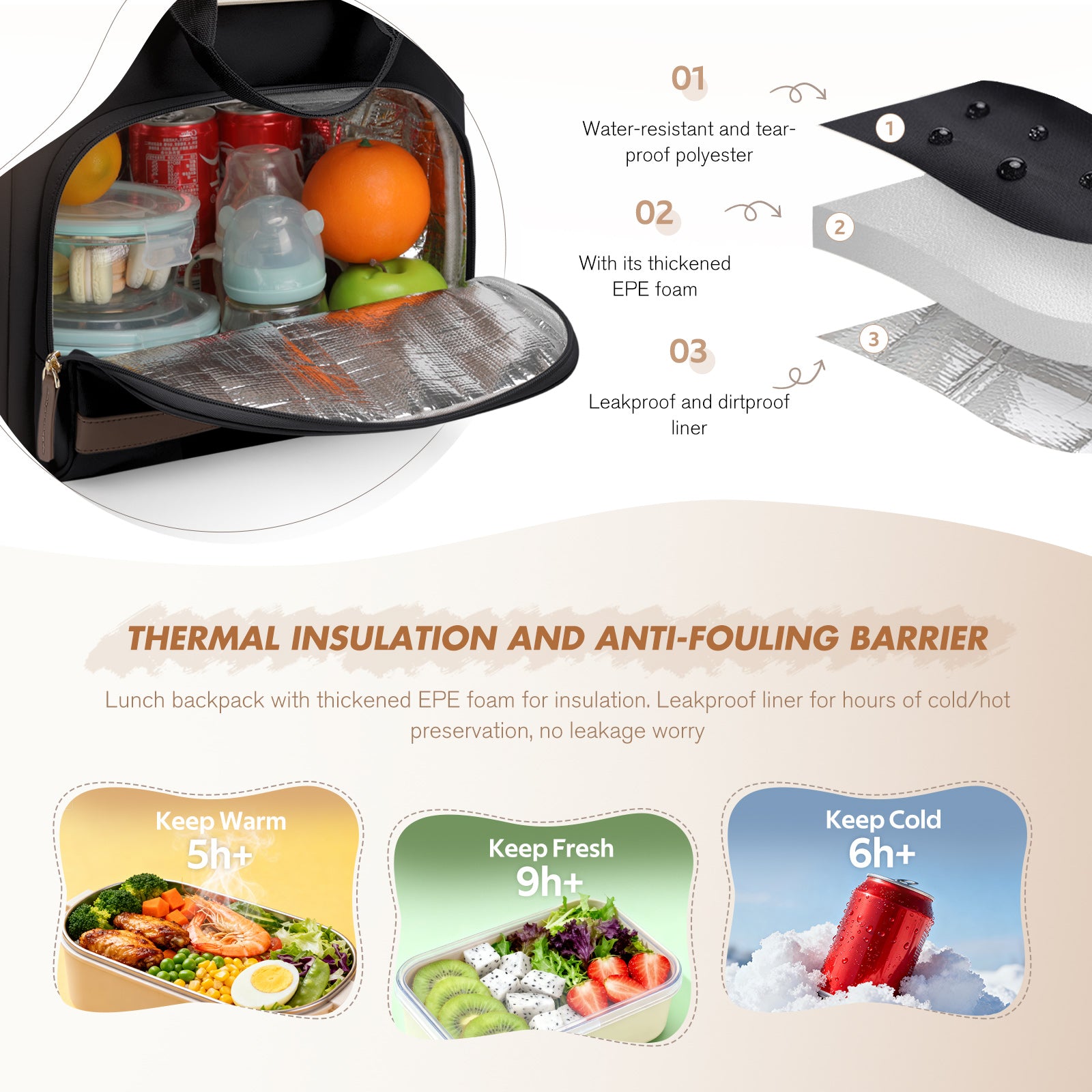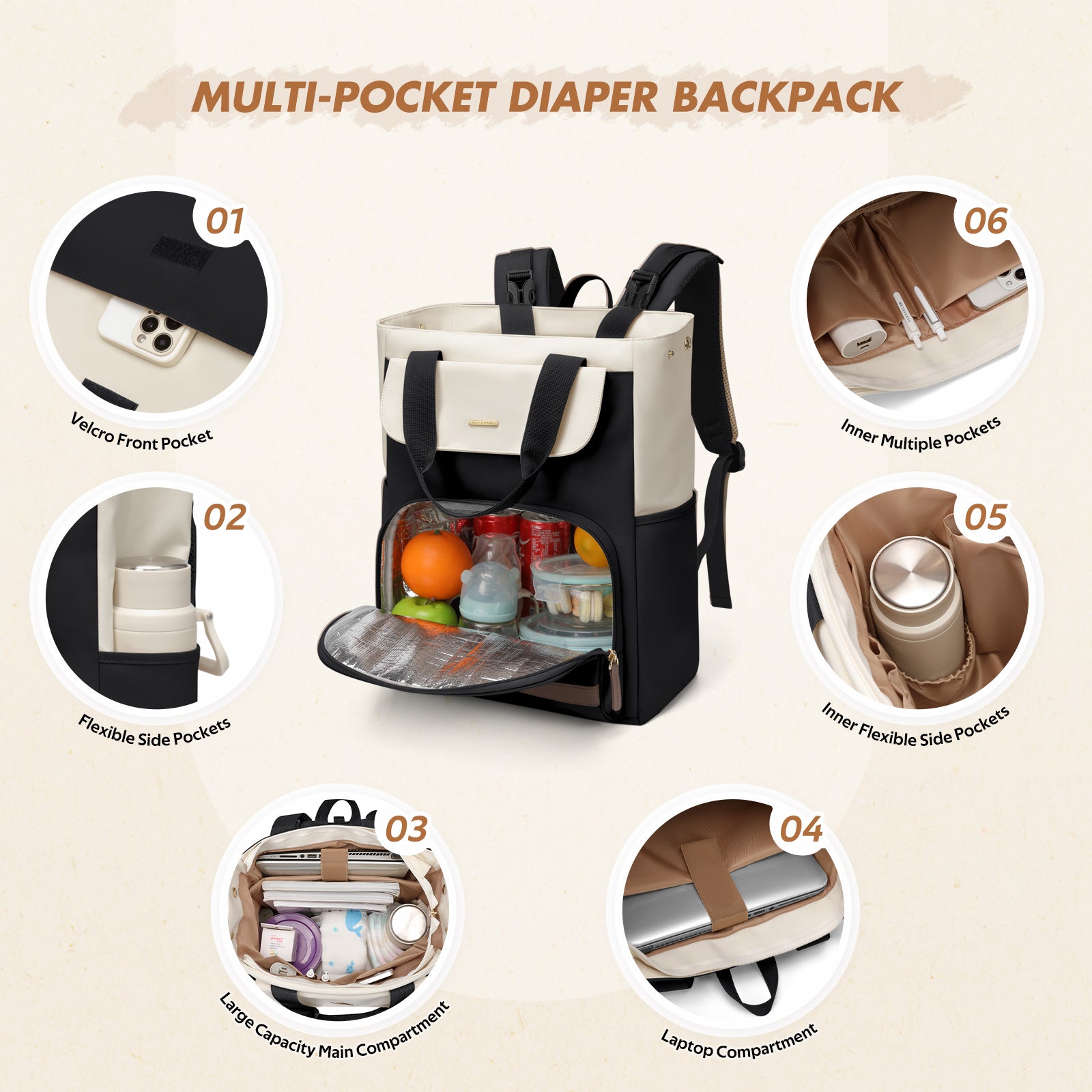 - 2-Piece Set with Insulated Food Compartment - Designed for everyday travel, this diaper backpack includes a spacious insulated compartment hidden inside the main storage area—ideal for keeping baby meals, snacks, fruits, or pumped milk fresh on the go. Comes with a soft, portable changing mat (60×38cm / 23.6×15in) for quick diaper changes anytime, anywhere.