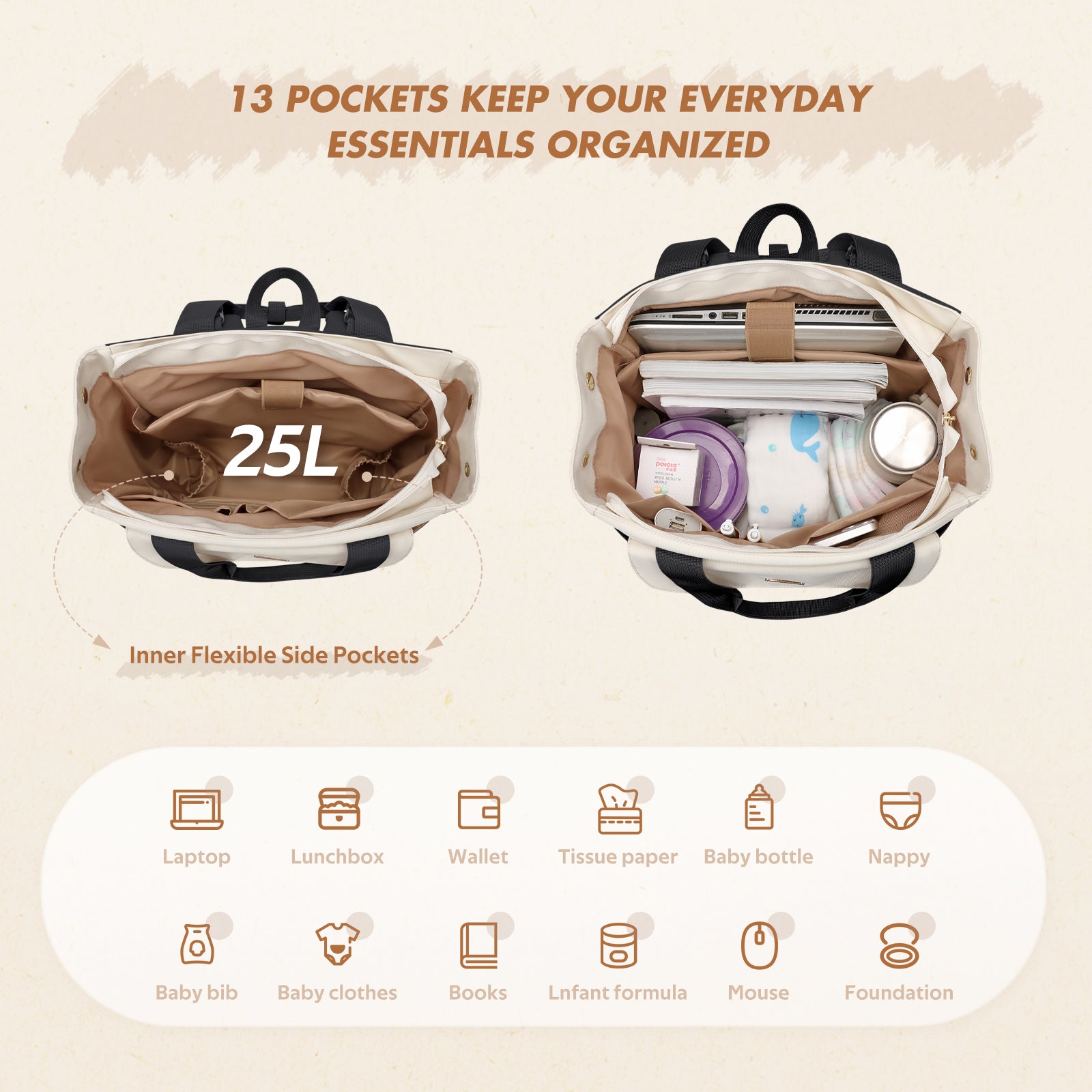 Diaper Bag Backpack with Portable Changing Pad 25L Baby Bag Insulated lunch box Backpack Fits 17.3" Laptop