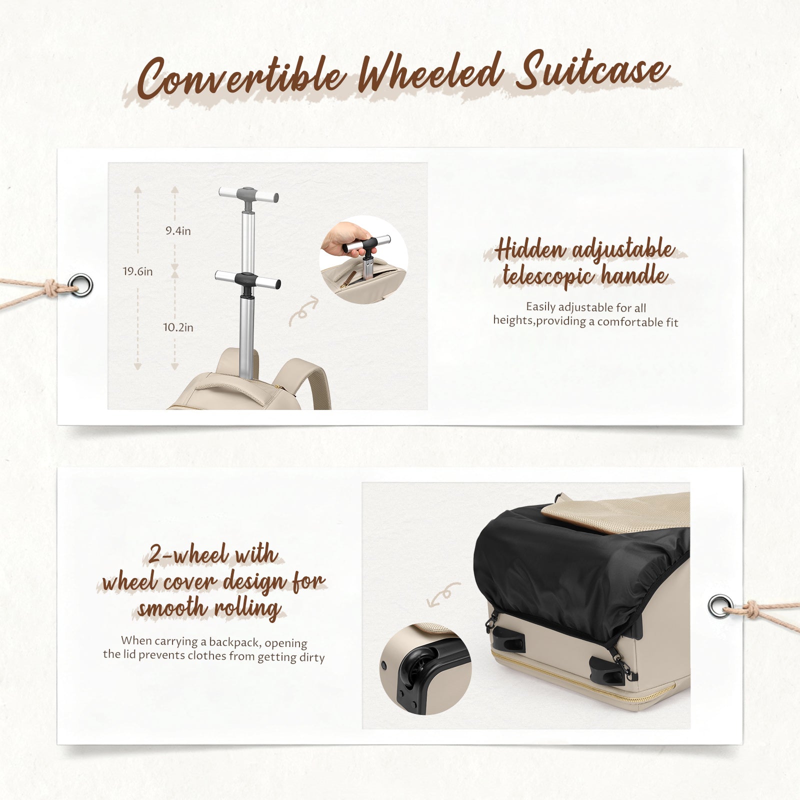 - Convertible Rolling & Backpack Design - Designed for both business and travel, this rolling laptop backpack easily switches between wheeled mode and backpack mode. Hideaway padded straps and a wheel-cover panel keep your clothes clean while carrying. Perfect for airports, offices, campuses, or commuting.