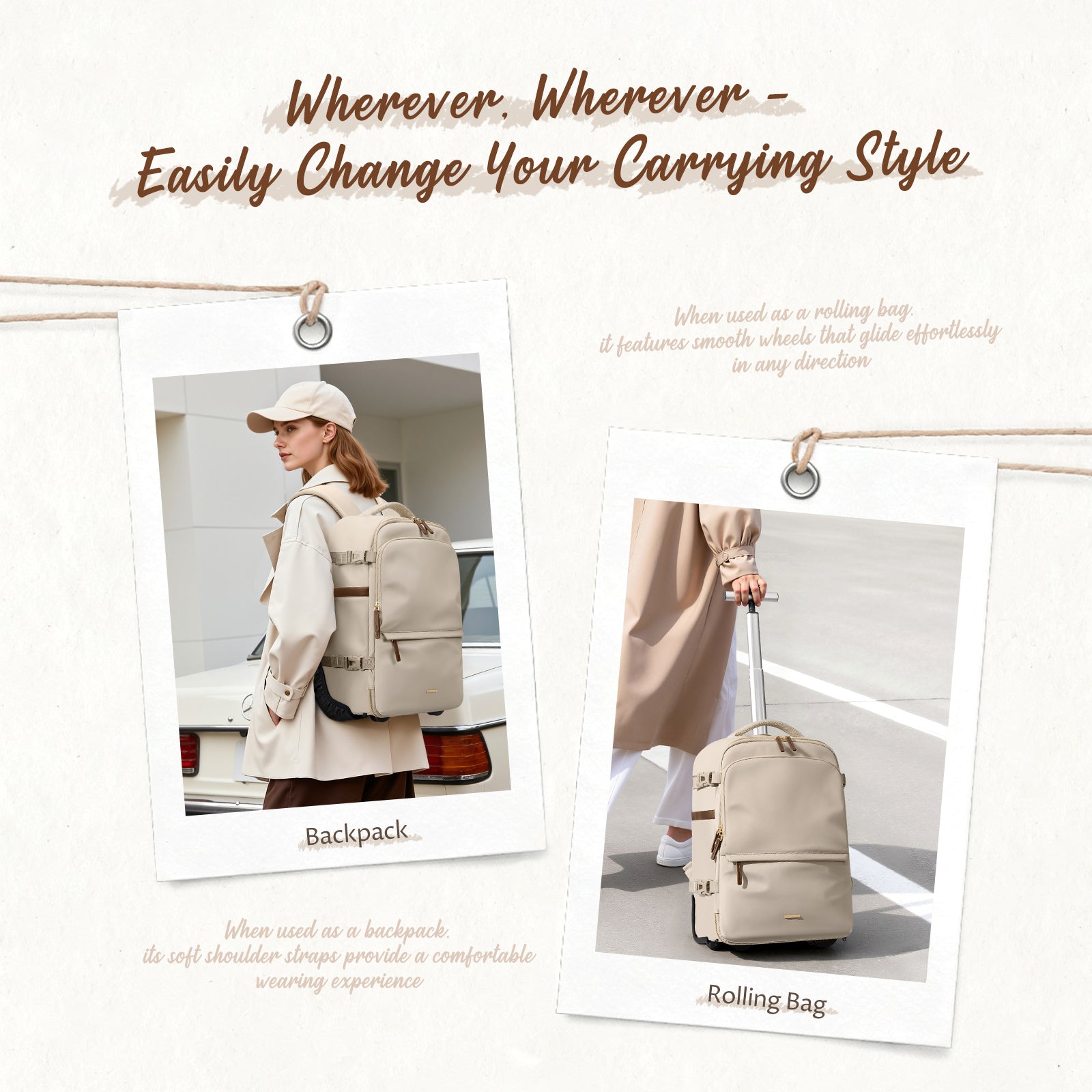 Rolling Backpack for Women 17 Inch Convertible Laptop Backpack with Wheels, 32L Carry On Business Luggage Daypack Water-Resistant Rolling Bag for Work Short Trips