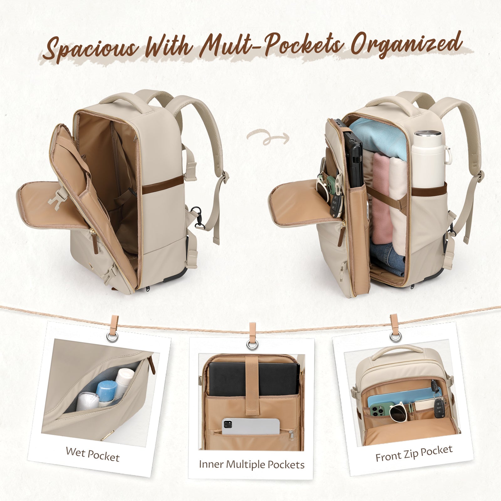 - Smooth Rolling for Hassle-Free Travel - Equipped with sturdy wheels and a retractable aluminum handle, this travel backpack glides smoothly through terminals and city pavements. Weight at 2.12kg / 4.67lbs, reducing fatigue during long travel days.