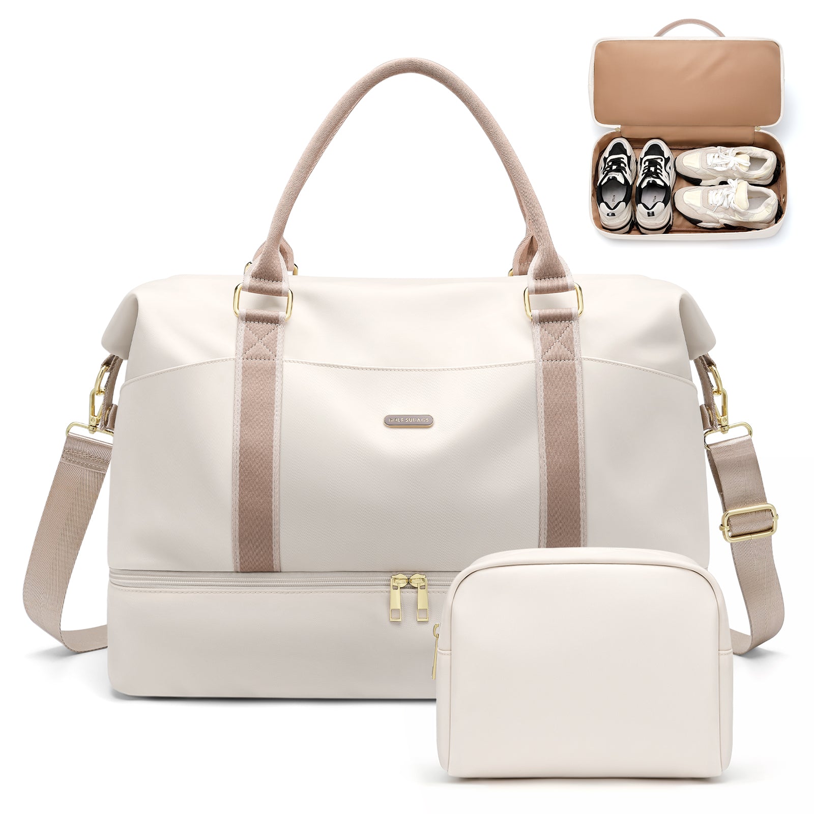 Weekender Bags for Women, Carry On Travel Duffel Bag with Shoe Compartment & Toiletry Bag, 46L Overnight Bag Gym Hospital Bags for Labor and Delivery