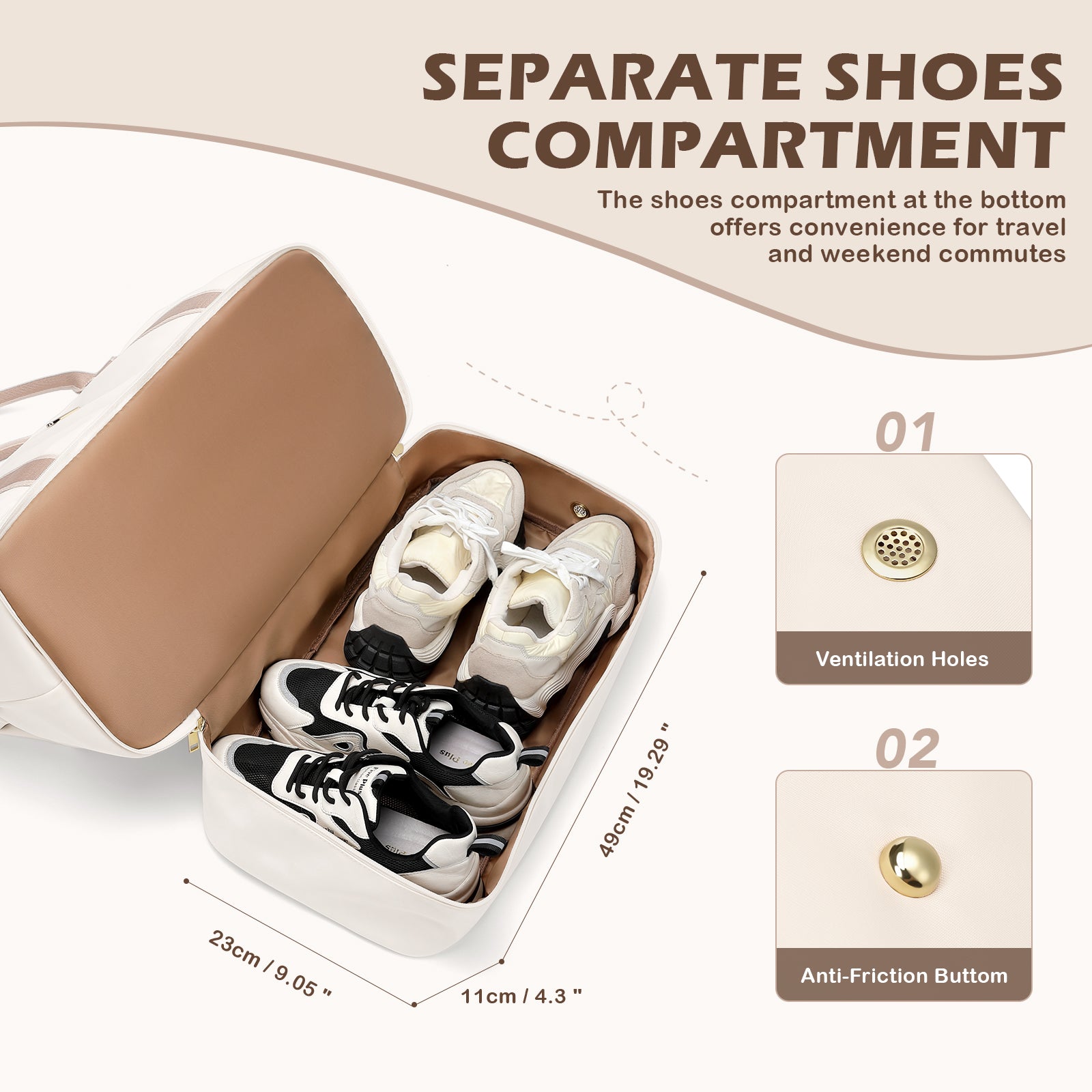 【Independent Shoe Compartment with Ventilation】 Designed with a bottom shoe compartment featuring breathable holes to keep shoes or dirty clothes separated from clean items and reduce odors — ideal for gym, travel, or business trips.