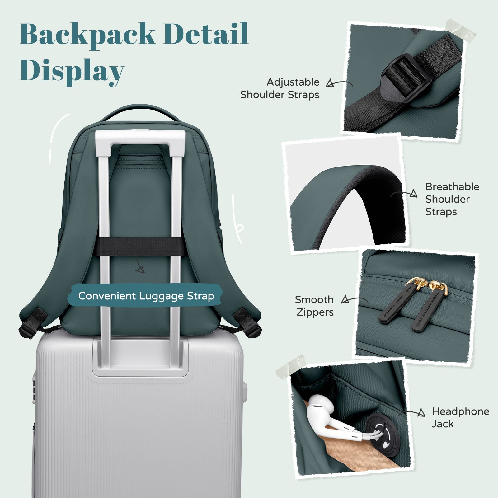 - 🌟 SMART STORAGE & ORGANIZED LAYOUT - Designed with 1 main compartment, 1 mesh zip pocket, 1 padded laptop sleeve (fits laptops up to 15.6 inch), 1 secondary compartment, 1 inner zip pocket, 1 mesh slip pocket, and 2 insert pockets. Exterior includes 2 front zip pockets (with 2 insert pockets + 1 pen slot), 1 rear zip pocket, 1 side pocket, 1 tissue side pocket, 1 earphone port, and 1 luggage strap.