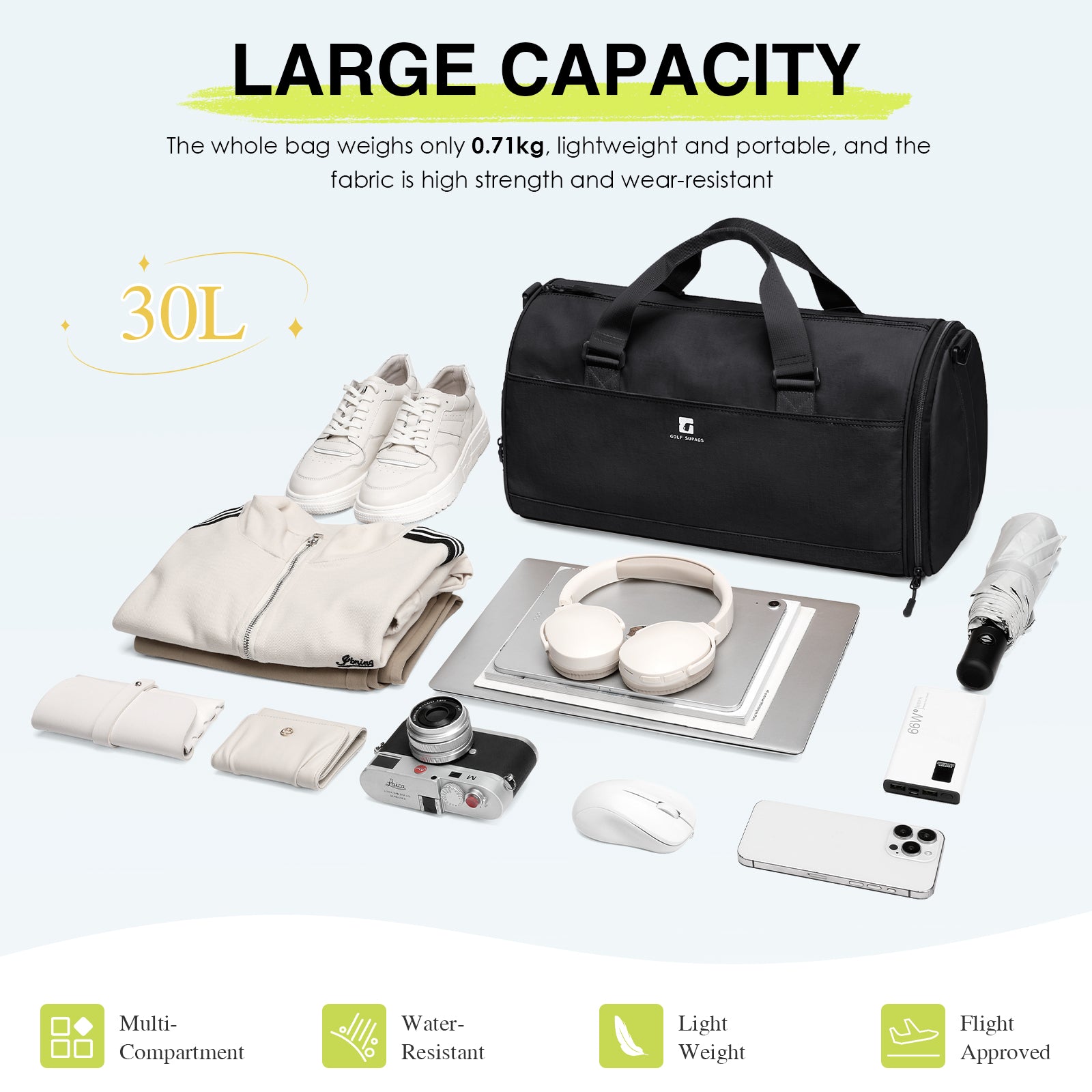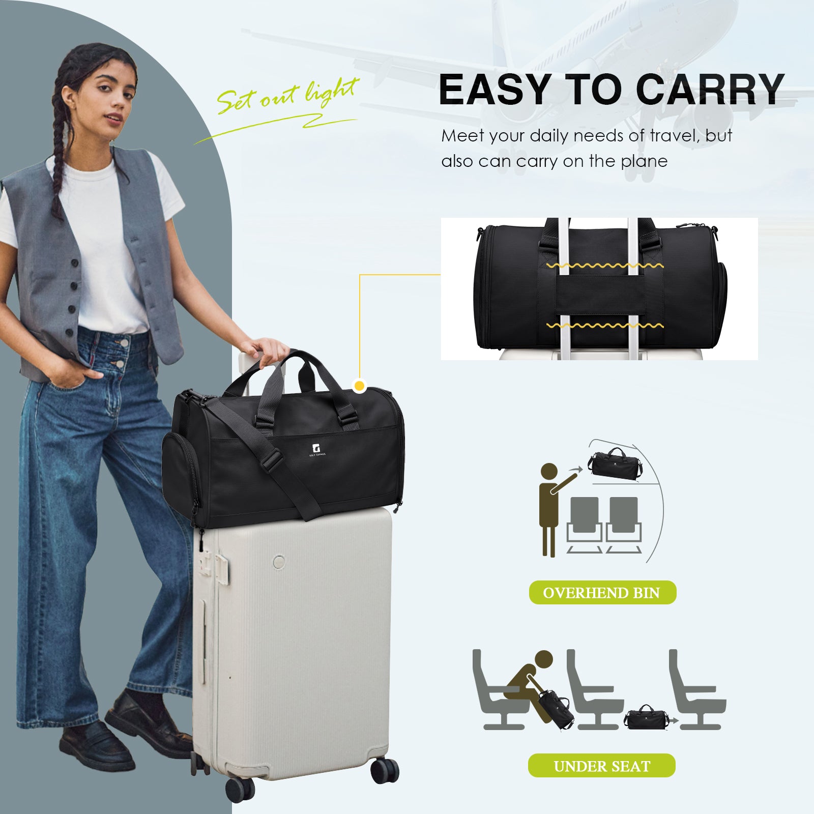 - Large Storage Space: This travel bag has a spacious main compartment with a capacity of 30.6L for storing clothing and personal objects. There is also a zipper pocket and 2 insert pockets inside, which offer a variety of storage options for your objects, and 2 zipper pockets on the outside for quick access to frequently used objects;