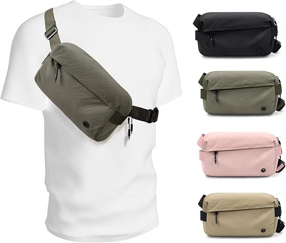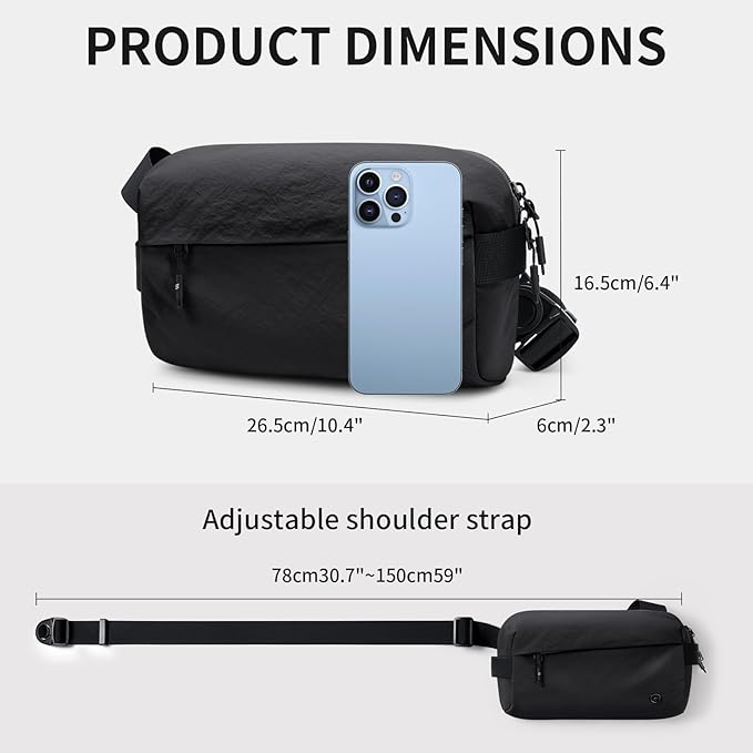 - 【Size and Colors】This unisex chest bag has a stylish design, there are 4 different colors: black, khaki, pink and moss green, the size is 10.4 x 6.5 x 2.4 in/26.5 x 16.5 x 6 cm, the inner compartment measures 24.5 x 14 cm and can hold a 7in game console.