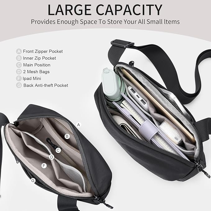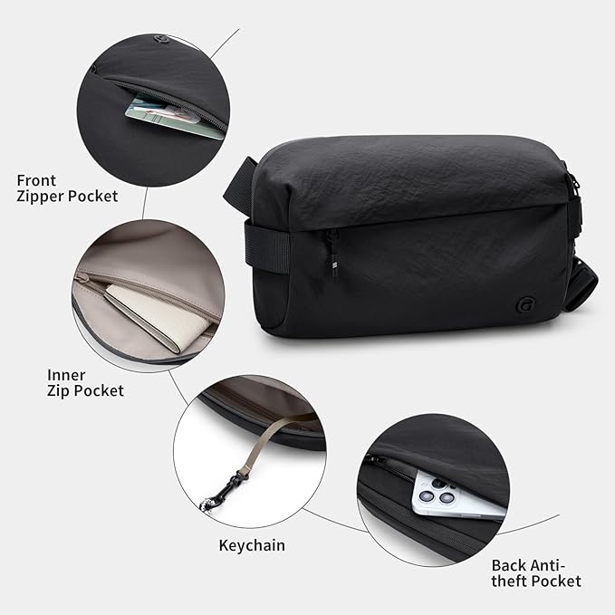 - 【Multiple Storage】Our unisex chest bag has multiple pockets, the larger compartment can hold a 7 inch game console, with 2 inner pockets, 1 inner zipper pocket, 1 key chain; the outside has 1 front zipper pocket and 1 back zipper pocket. Here you can store daily necessities and other small items to ensure safety and organization.