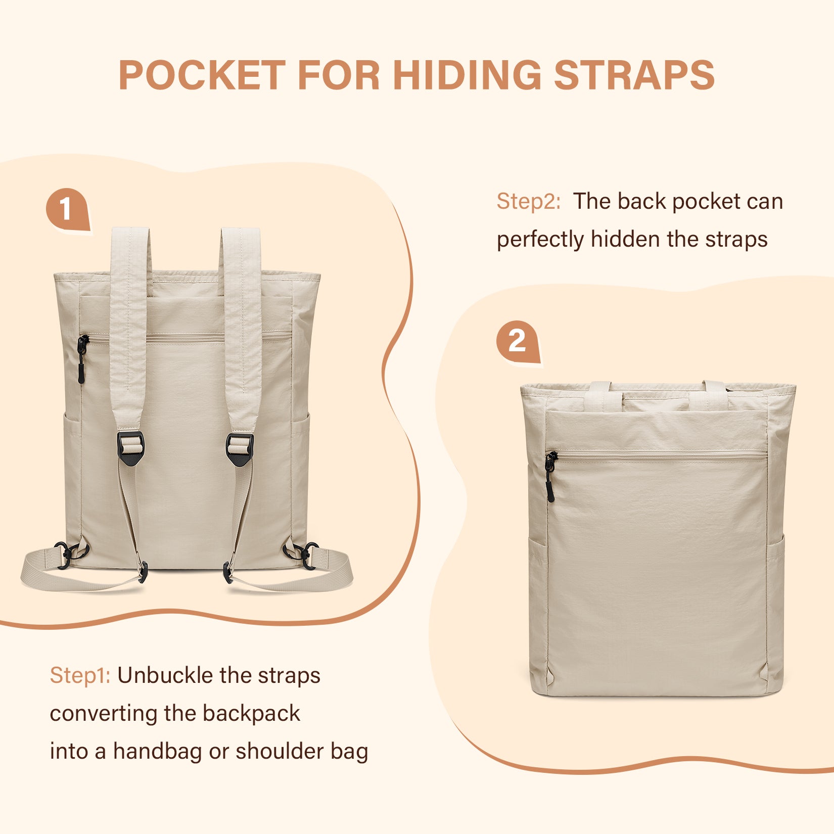 - MAXIMUM VERSATILITY - Easily switch between a tote bag and a backpack with this convertible design, offering flexibility for different occasions—whether you're heading to work, traveling, or going for a casual outing.