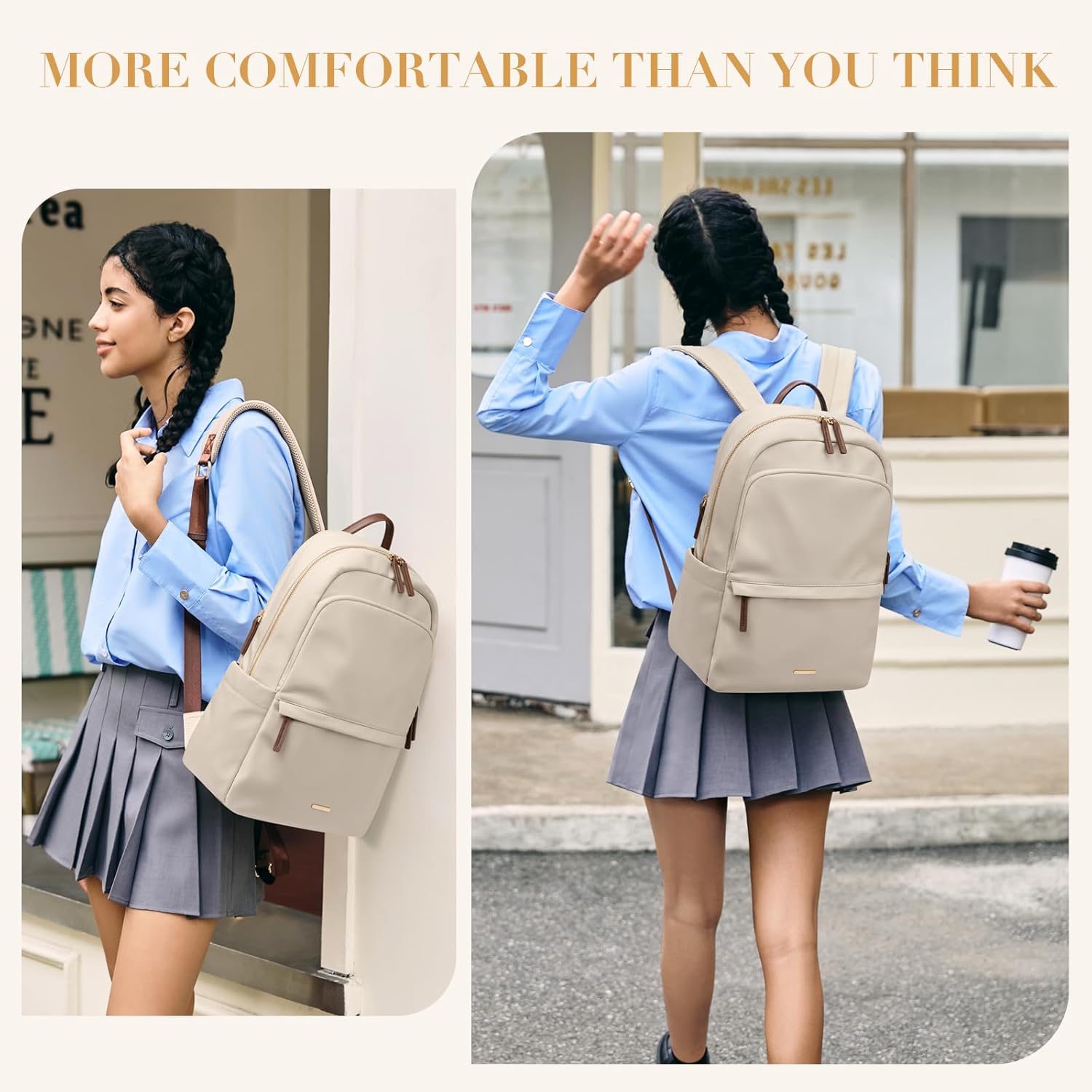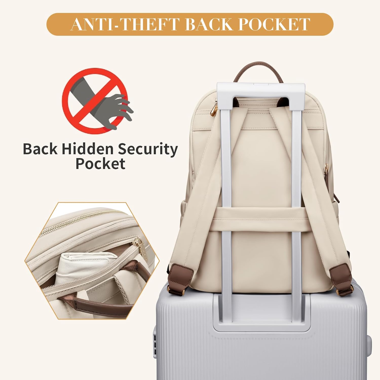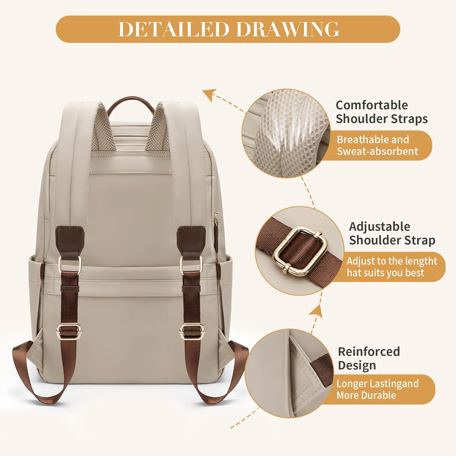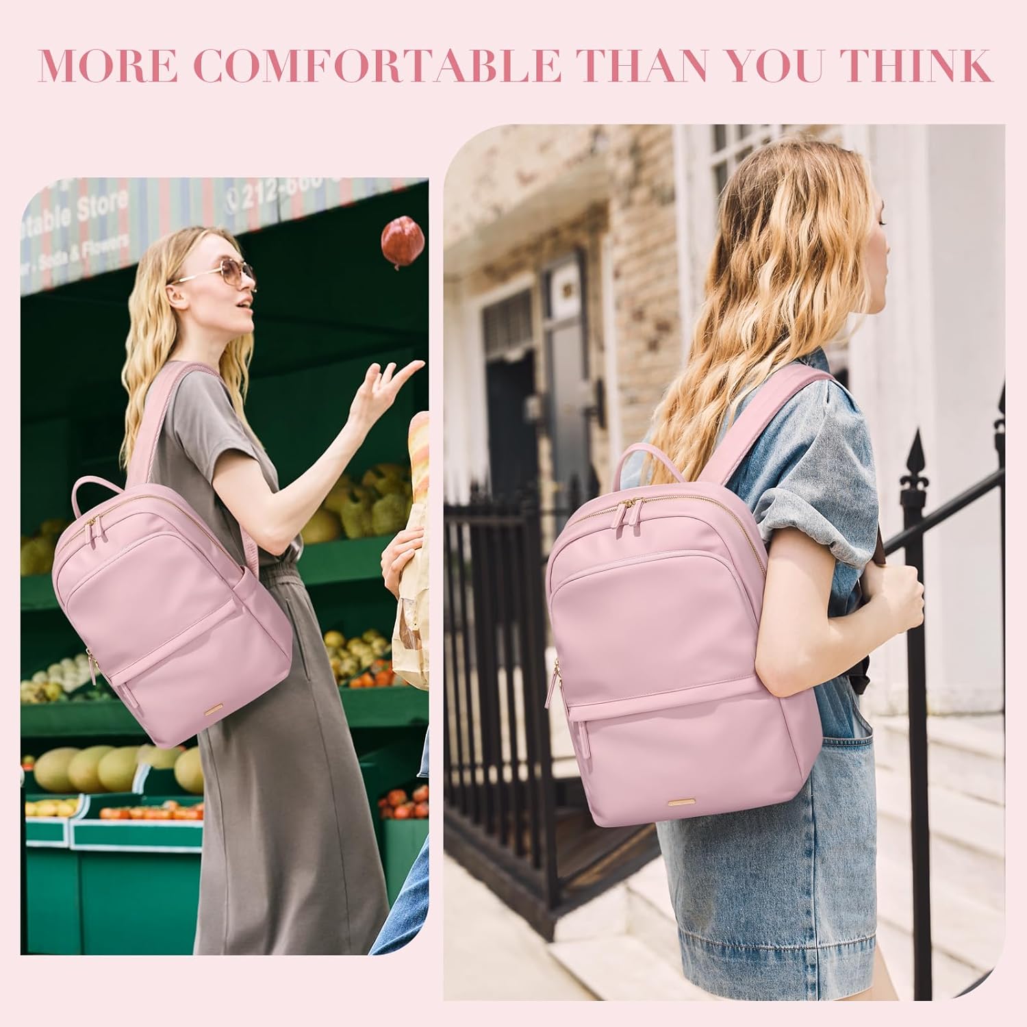 - 💖Size & Color - GOLF SUPAGS women's laptop backpack adopt stylish designs and different color choices(Pinkish Gray, Apricot, Black). Size: 15" x 11" x 4.7"/38 x 28 x 12cm.