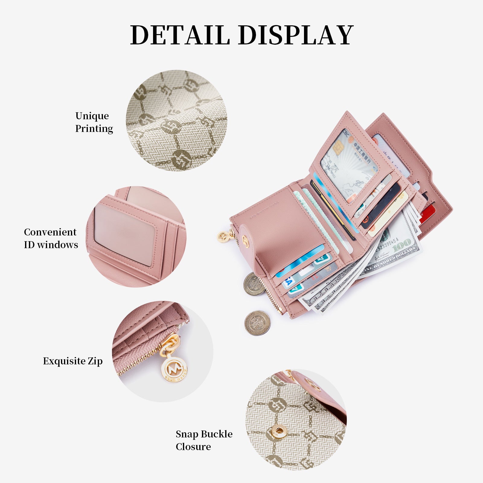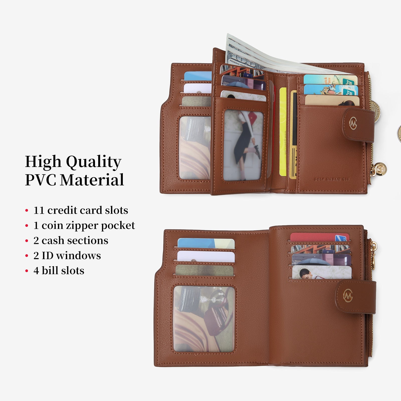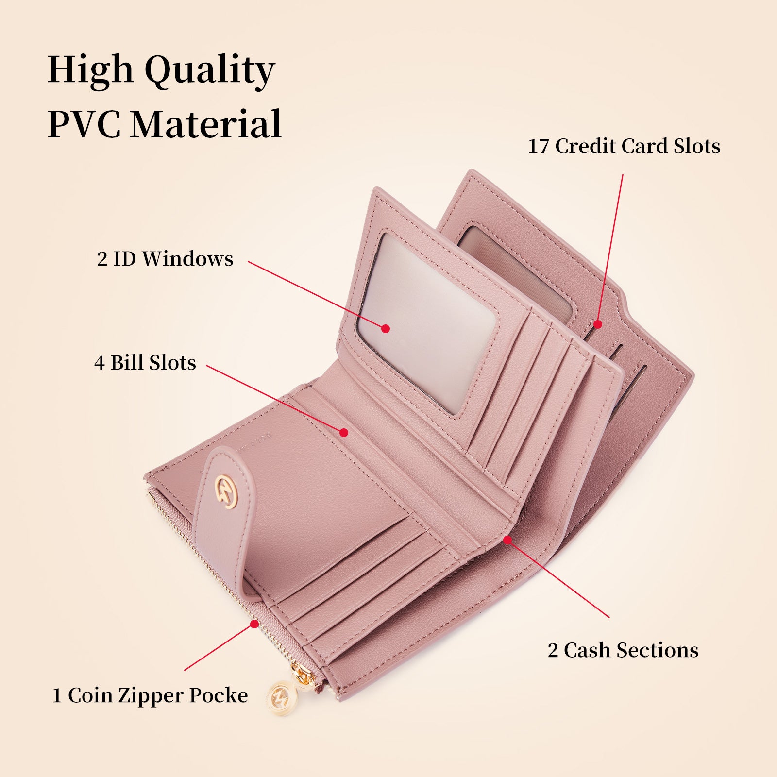 - đăCompact & Spaciousă- The wallets for women built with 11 credit card slots, 2 ID windows, 2 cash sections, 4 bill slots, and 1 coin zipper pocket. Roomy enough for fitting plenty of cards, change and dollar bills, coins, keep them well organized.